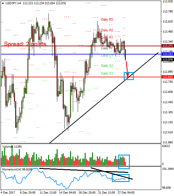 Пара пробила уровень поддержки 113.15, что может стать причиной для ее снижения к 112.80 на фоне «тонких» праздничных торгах.